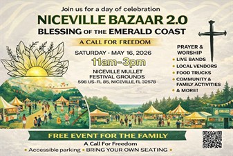 Join us for a powerful day of celebration, connection, and community at Niceville Bazaar 2.0: Blessing of the Emerald Coast – A Call for Freedom, hosted by Freedom Life Compass. This free, family-friendly event invites the community to gather in unity for a time of prayer, worship, and fellowship along the beautiful Emerald Coast.