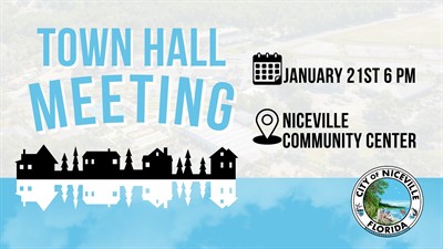 Kick off the new year by staying informed and getting involved! Join us for a Town Hall Meeting featuring an open discussion with the City Manager David Deitch and Mayor Dan Henkel on what’s happening in Niceville.